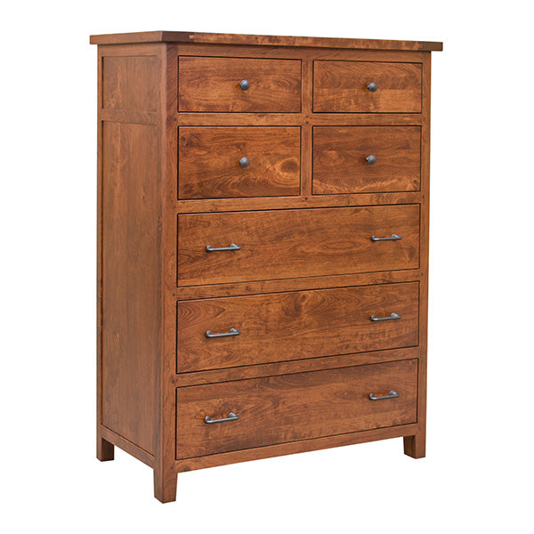 This "TM" dresser coordinates with a bold and substantial bed, chest and night stands. There is a whole set and we can build it to size if necessary. Drawers are dovetail jointed and include full extension slides. Note the bread board ends on the top with the dowels exposed for strength and bold design.