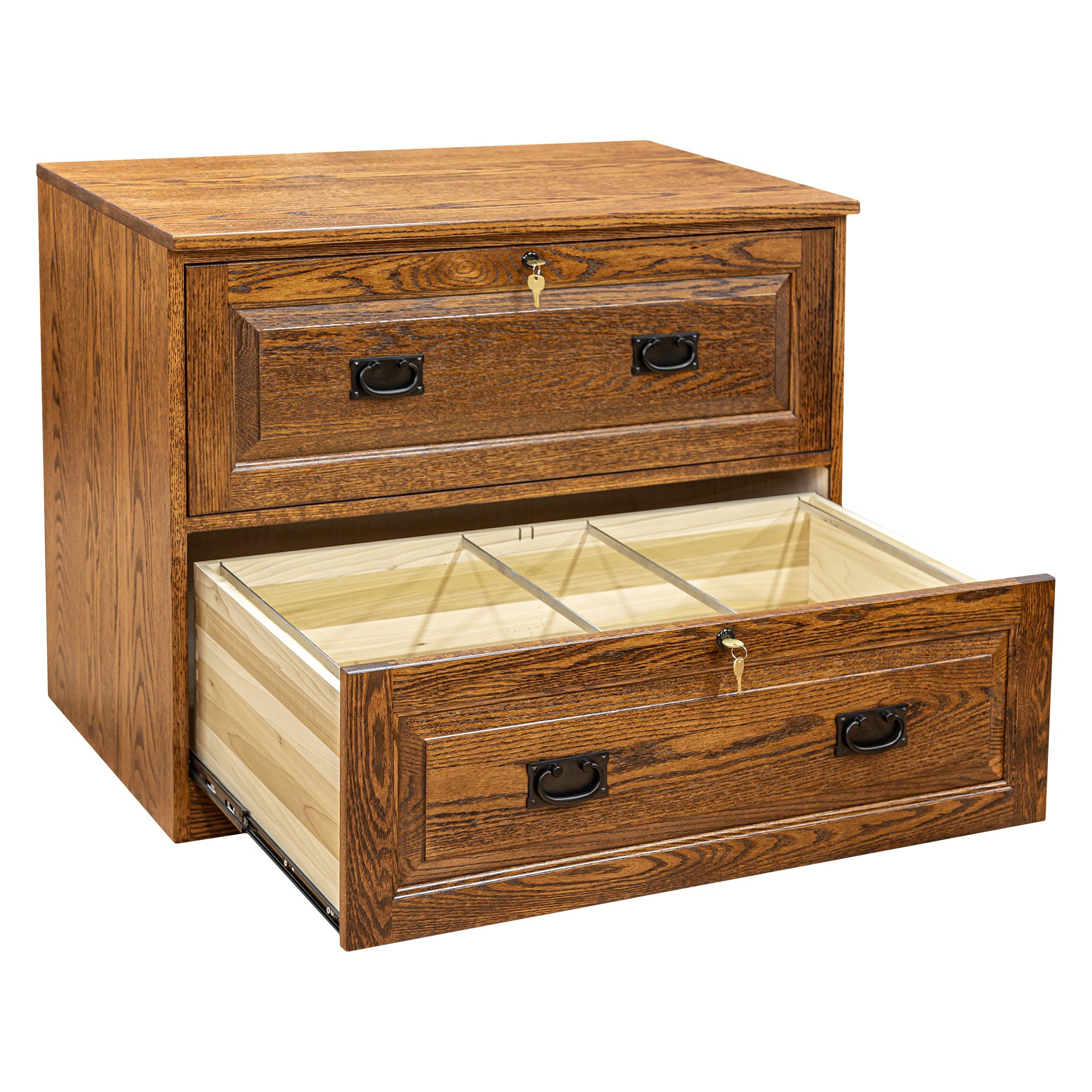 Solid wood furniture made in USAThis beautiful Traditional 2-Drawer Lateral File Cabinet is perfect for keeping your documents protected and organized. This file cabinet is perfect for your office or home and includes many deluxe features: