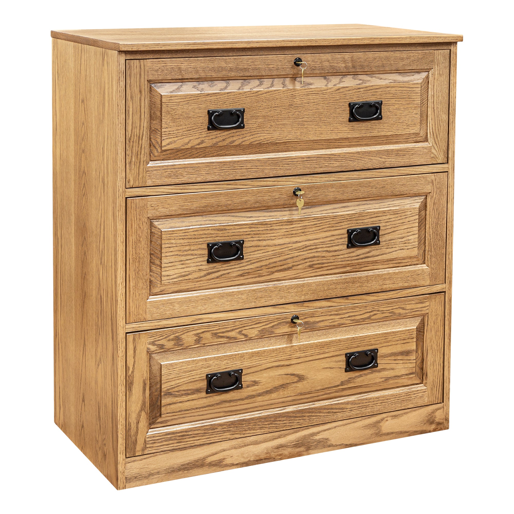 Solid wood furniture made in USAThis beautiful Traditional 3-Drawer Lateral File Cabinet is perfect for keeping your documents protected and organized. This file cabinet is perfect for your office or home and includes many deluxe features: