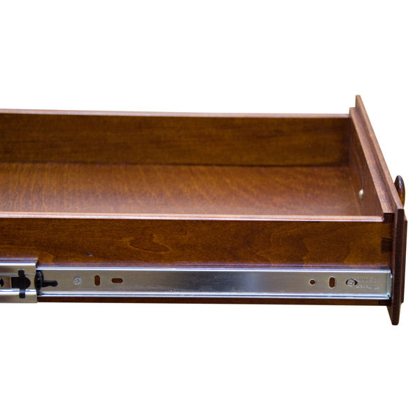 This exceptionally durable and sturdy table features a middle drawer that sits on full-extension side mount ball bearings for an exceptionally smooth motion allowing it to easily and gracefully glide open and shut with no exertion necessary. Furthermore, the finish is sealed with conversion varnish that protects this elegant piece from water, oil, alcohol and even nail polish. These features give this table not only a refined look but a prestigious feel as well in addition to being a great addition to your dining room.