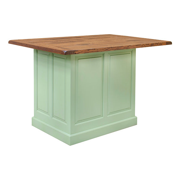 Shown here is a planked oak top 36" by 48" with Solid Maple Painted Finish. Can be custom built in any size, any wood, or any finish. A simple island or a complete kitchen!