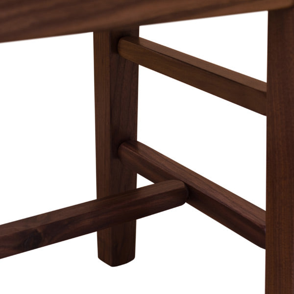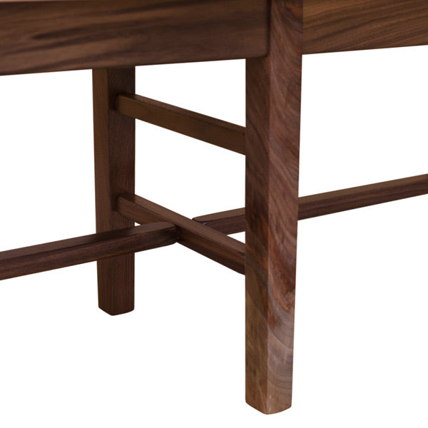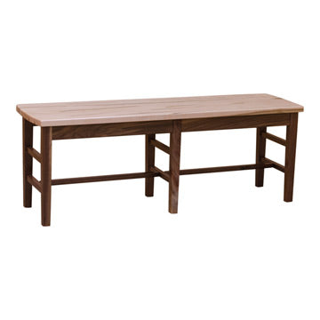This is another variation of our popular bench. The top is made out of lovely wormy maple and the rest are solid walnut in a natural finish. This combination of woods gives this a nice two tone look. In addition, the unique pattern of the wormy maple with beautiful brown and gray stripes with small holes does not make the wood less sturdy. This is available in different woods and finishes.