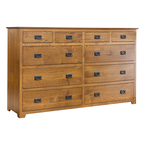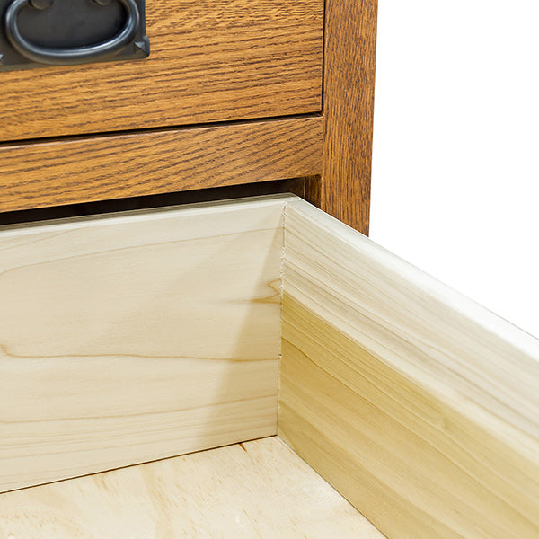 Our distinctive Yancy Cobler (Our Designer) series of dressers and chests have a hint of "Arts and Crafts" and yet "Mid Century" details and materials. Shown here is Solid Rustic White Oak Wood. This series is also available in all Walnut, Cherry, Maple, and Plain Cut Oak, in any finish color. Note the distinctive black mission handles. There are also different hardware alternatives. Shown with an OCS-113 finish