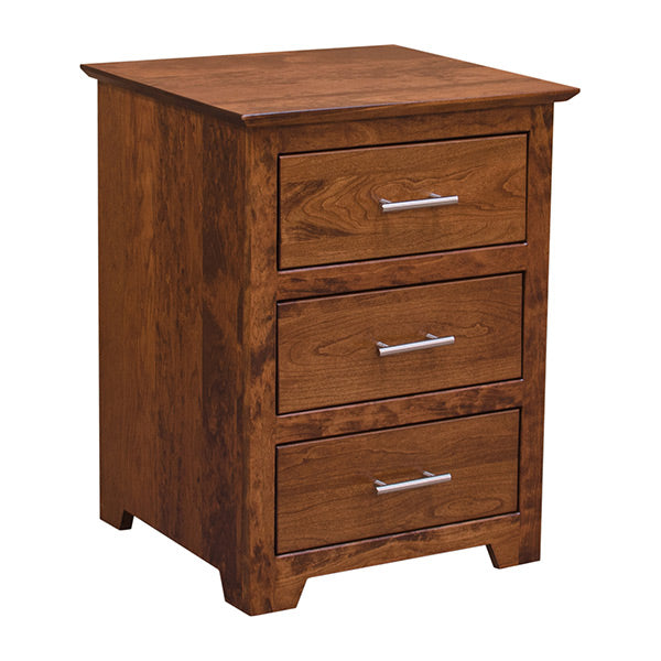 This fine three drawer nightstand possesses high quality and an attractive simple design. Moreover, this is built by highly skilled US craftsman with generations of experience in furniture making. Notice the beautiful artistic grain pattern of the Character Cherry Wood. What is Character Wood? It is cut from the outside layer of the log closest to the bark. As a result, it will show varying knots and different grain patterns.
