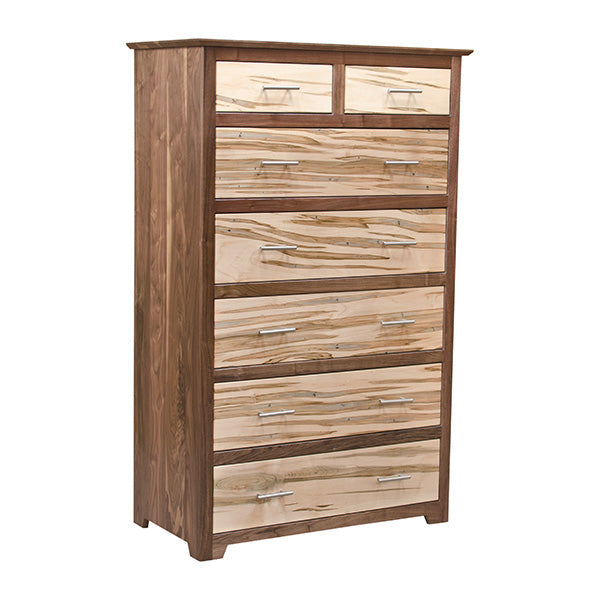 Our distinctive YC series of dressers and chests have a hint of "Arts and Crafts" and yet "Mid Century" details and materials. We use Walnut Solids and distinctive Wormy Maple contrasts. Available in all Walnut or any way you like. All sizes are available both with and without drawers. Note distinctive brushed nickel hardware. There are also different hardware alternatives.