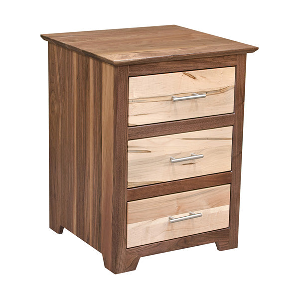 This Contemporary three drawer nightstand possesses high quality and an attractive simple design. Moreover, this is built by highly skilled US craftsman with generations of experience in furniture making. This is made from a Character Walnut that shows the unique pattern of the brown color and the creamy white sap. What is Character Wood? It is cut from the outside layer of the log closest to the bark. As a result, it will show varying knots and different grain patterns.
